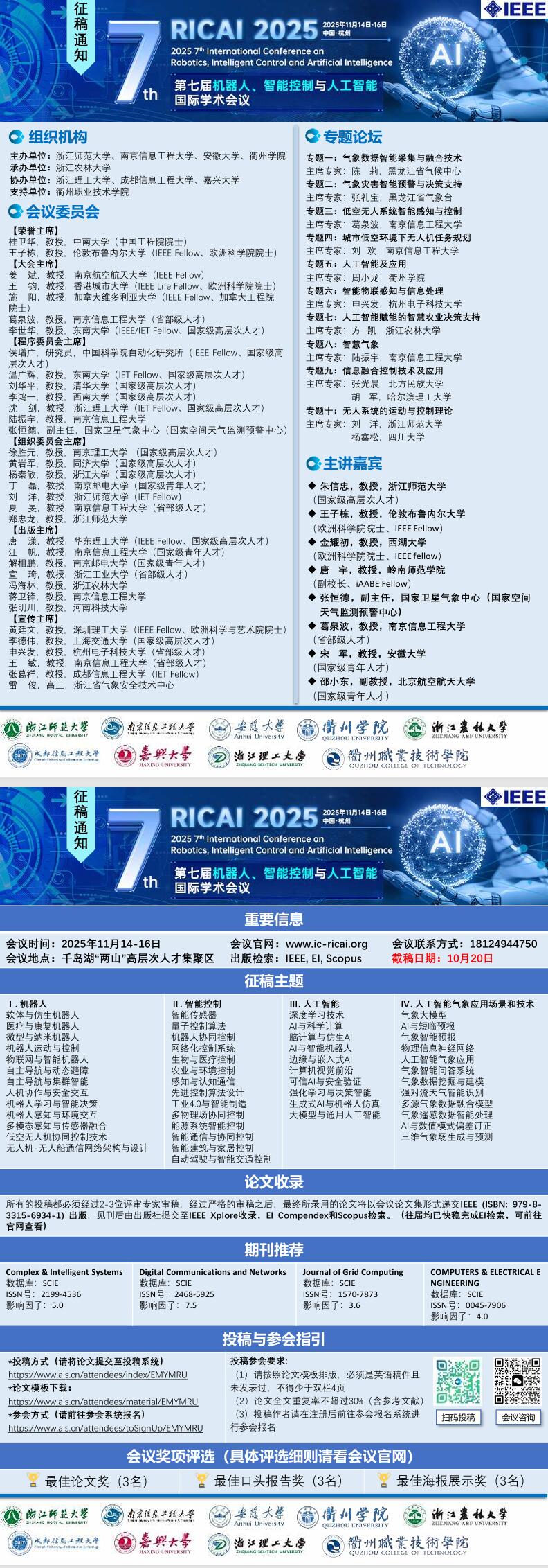 第七届机器人、智能控制与人工智能国际学术会议征稿